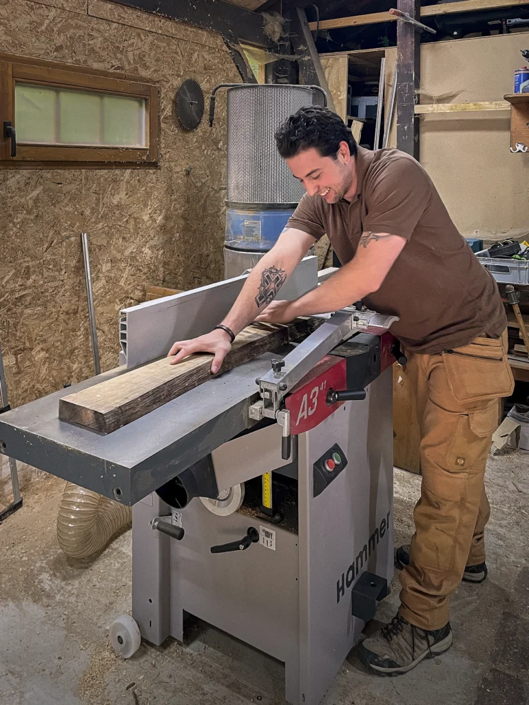 Aber ehrlich gesagt: Ganz fremd war mir das nicht. Schon früher habe ich in Spanien viel Zeit mit meinem Vater verbracht, der dort oft als Allround-Handwerker arbeitete. Ich half ihm beim Restaurieren, Schleifen, Reparieren – und kam so schon früh mit Holz, Werkzeug und echter Handarbeit in Kontakt. Das hat mich geprägt, auch wenn ich’s damals noch nicht richtig einordnen konnte.