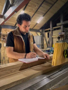 Zurück in Deutschland fing ich als Bauhelfer an, einfach mal reinschnuppern. Daraus wurde schnell mehr: eine Ausbildung in einer Zimmerei mit Schreinerei. Dort lernte ich alles, was man mit Holz machen kann – vom Dach bis zum Tisch. Ich merkte, wie viel Spaß mir das macht, und dass ich mehr kann als nur „mithelfen“.